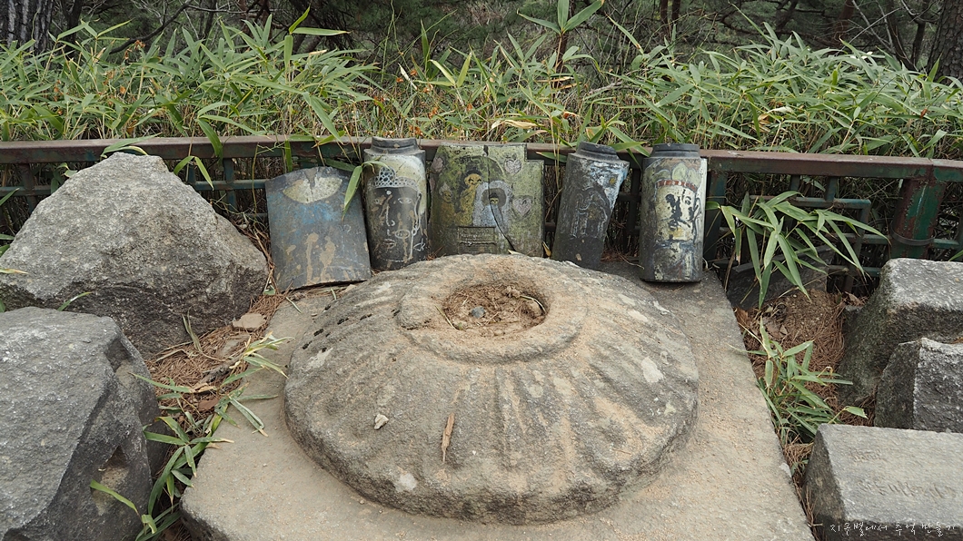글씨와 마주 보이는 길을 따라 60m 정도 내려가면 거대한 맷돌바위를 만나게 됩니다.