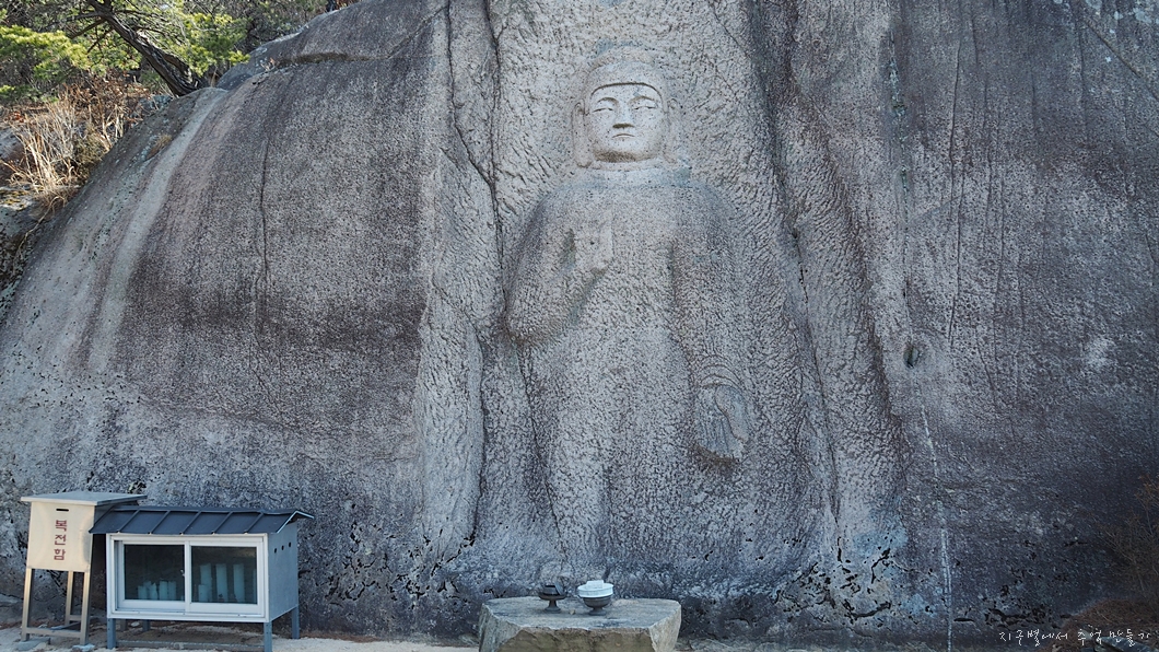 시원한 조망처에 멋진 부처님이 반가상으로 새겨져 있습니다.