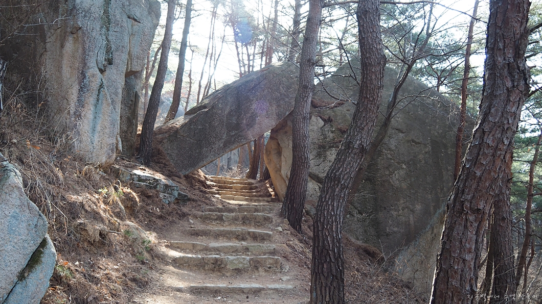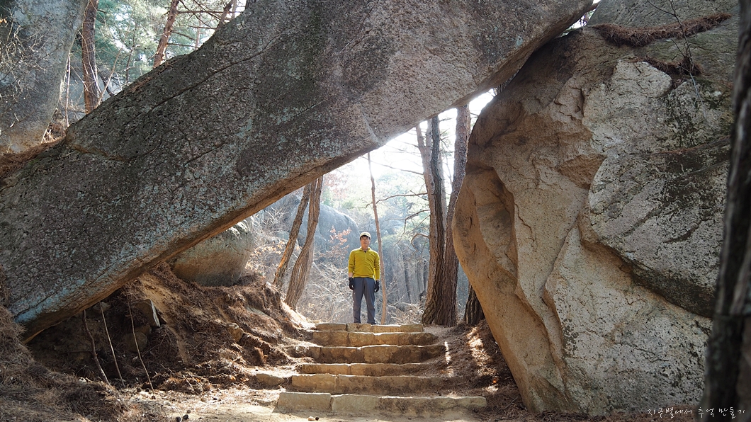 커다란 바위가 기울어져 만들어진 석문.