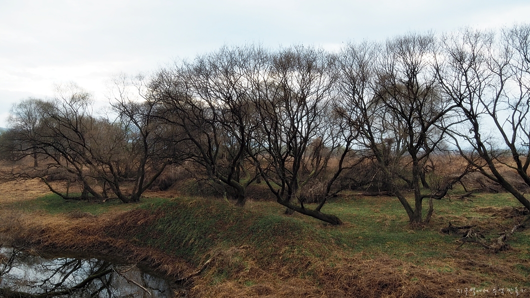 습지 군데군데 보이는 능수버들