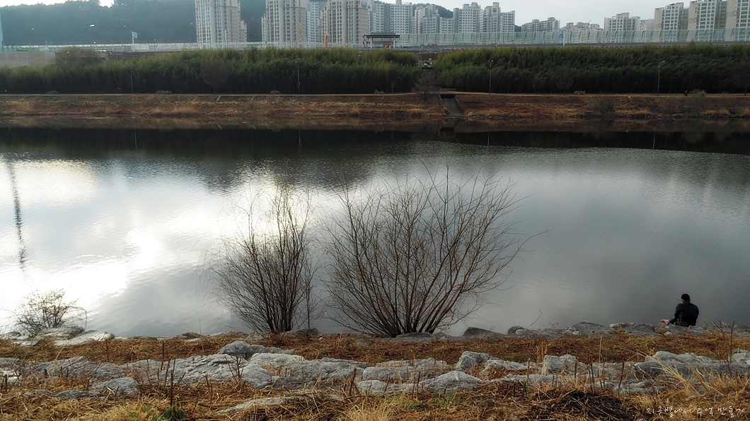 홀로 강둑에 앉아 있는 분.