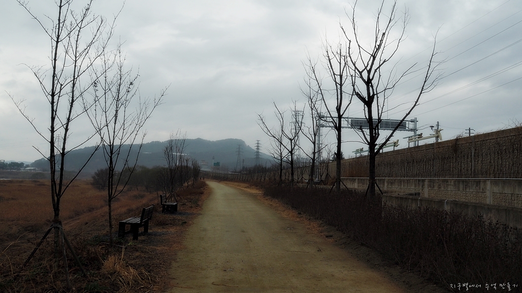 이전에는 이곳 둑길이 상당히 넓었는데 대구외곽순환고속도로 공사로 반 정도는 뺏겼네요.