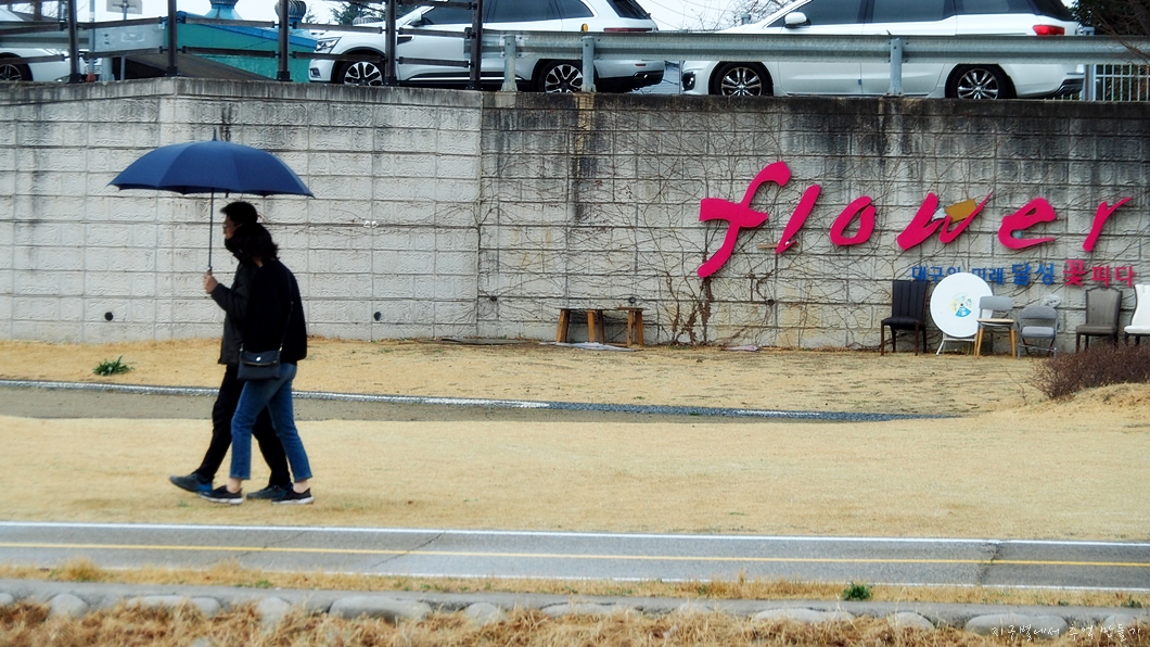 보슬비가 가볍게 내렸다 그쳤다하여 우산은 쓰지 않았답니다.