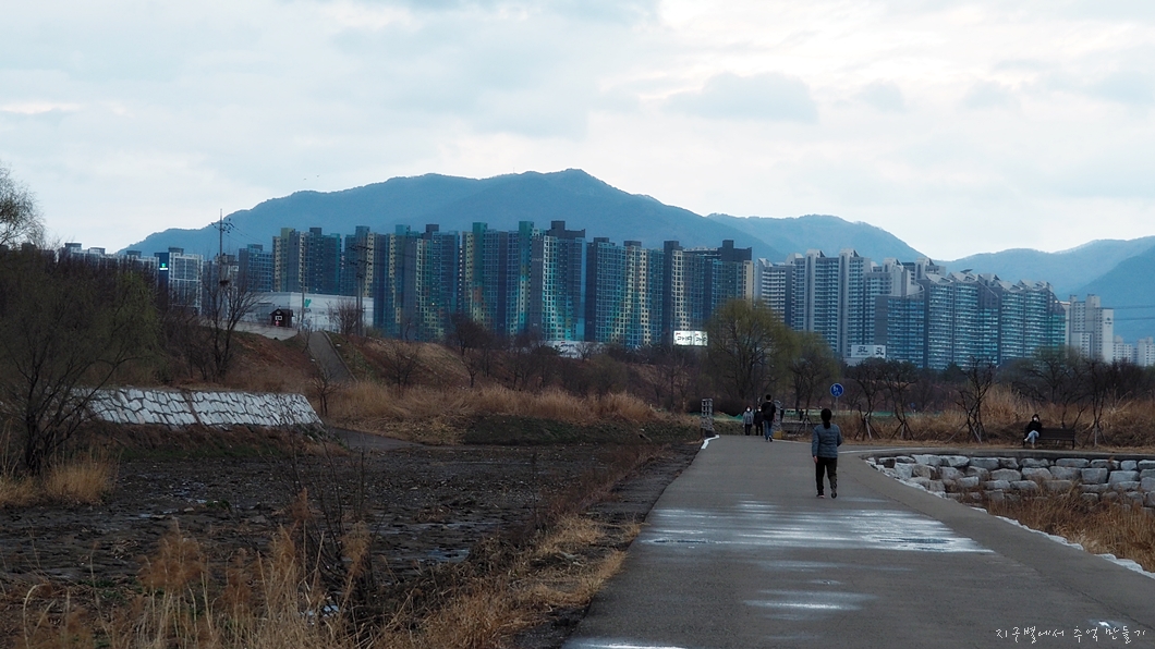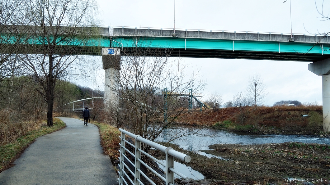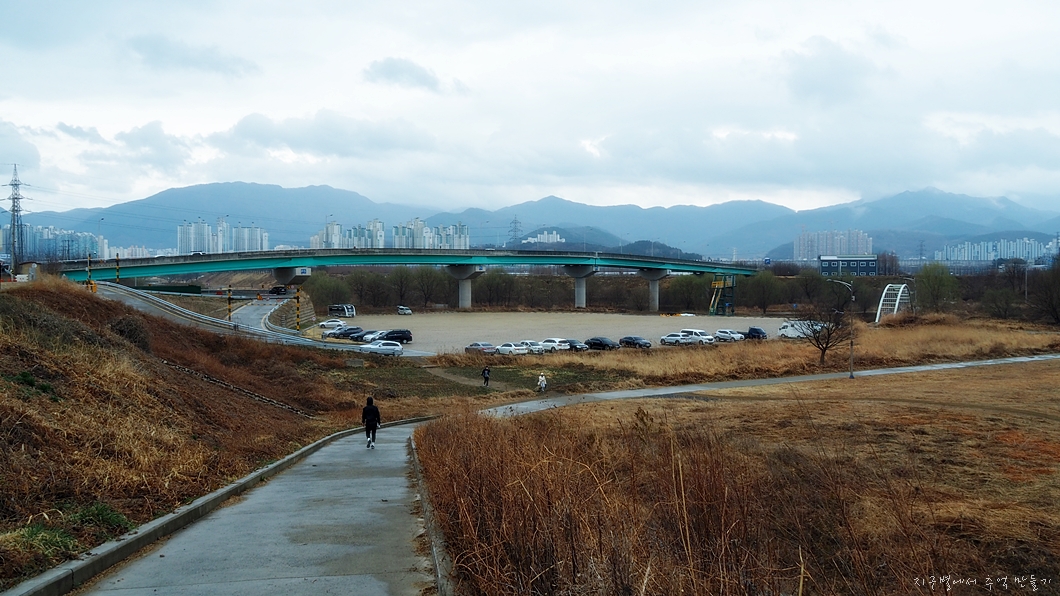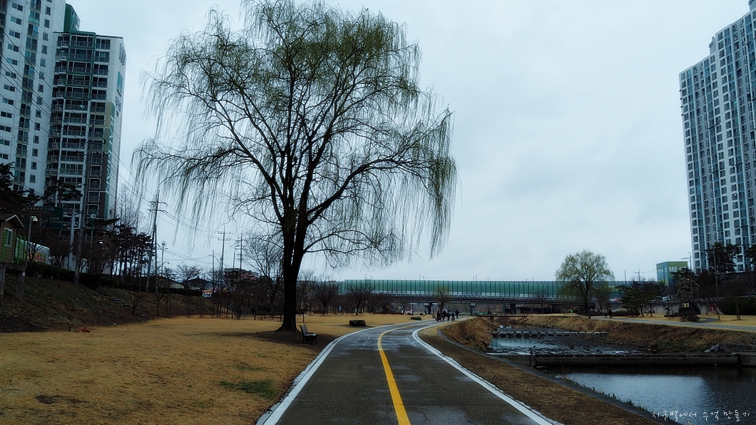 하천 양쪽으로 자전거도로와 트레킹로드가 설치되고 파크골프장과 여러가지 운동 시설들이 마련되어 주민들이 많이 이용하는 곳이구요.
