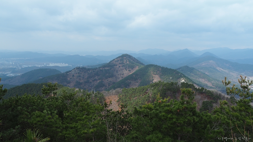 다시 앞쪽 조망이 탁 트이면서 환성산 초례봉 능선이 건너 보이네요.