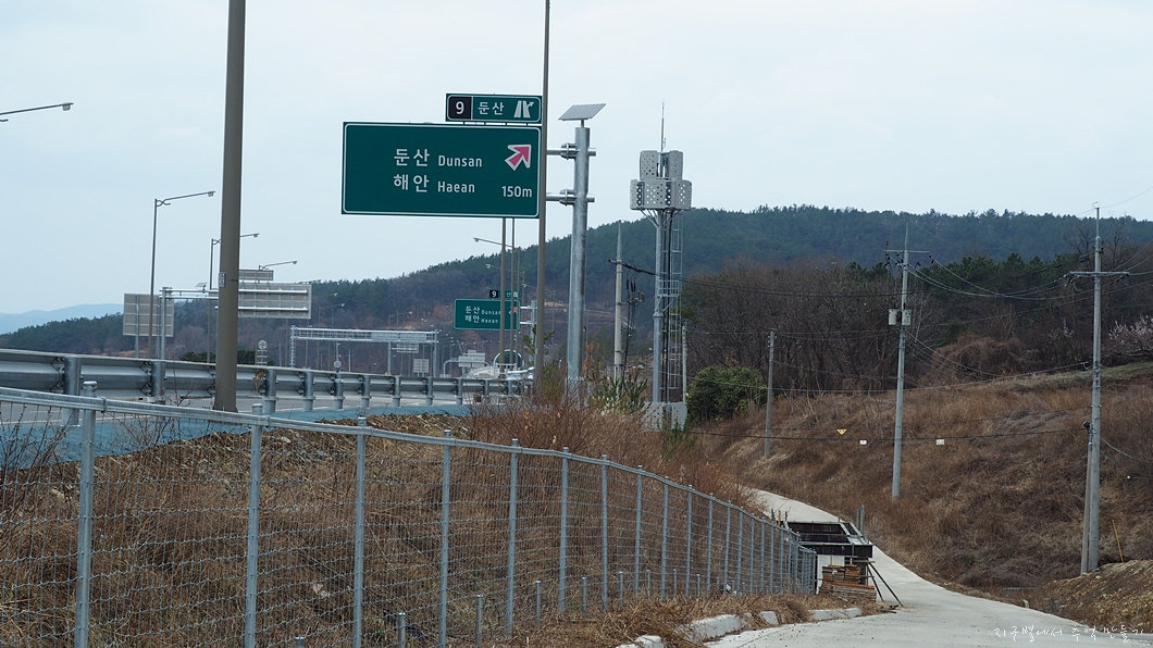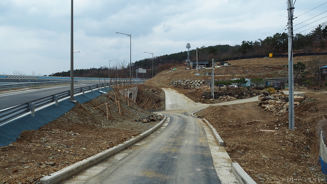 소동골에서 새로 생긴 대구외곽고속도로 옆길을 따라 계속 걸어갑니다.