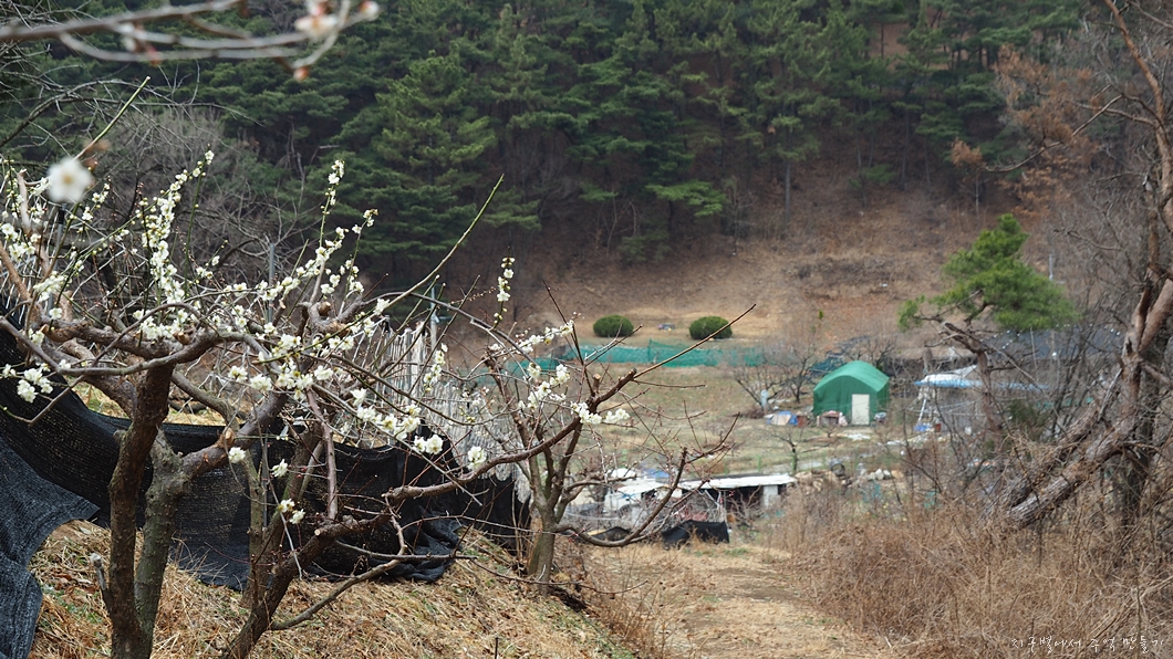 바로 옆 과수원에 매화가 곱게 피었네요.