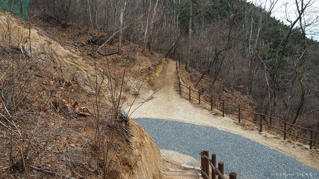 오던 길에서 직진 우측으로 꺾여 내려가는 방향이 능천산으로 가는 길.