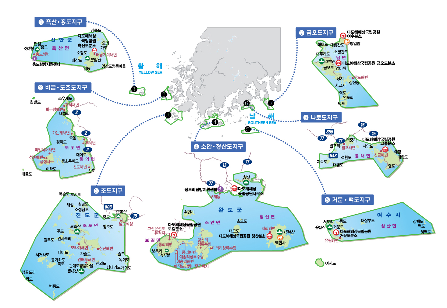 우리나라 산악 국립공원의 탐방 안내도입니다.