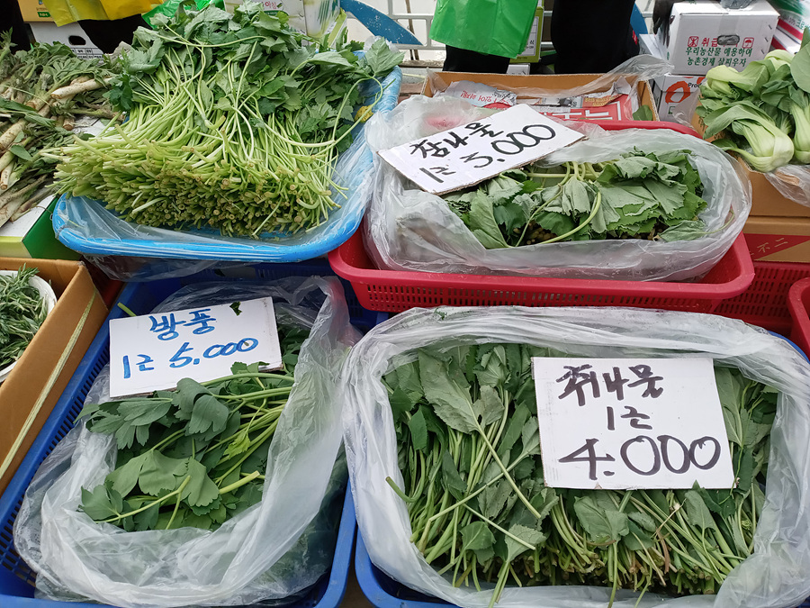 요즘 봄나물이 제 철이라서 방풍나물 외 나물을 한 보따리 구입을 했습니다.