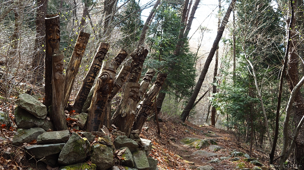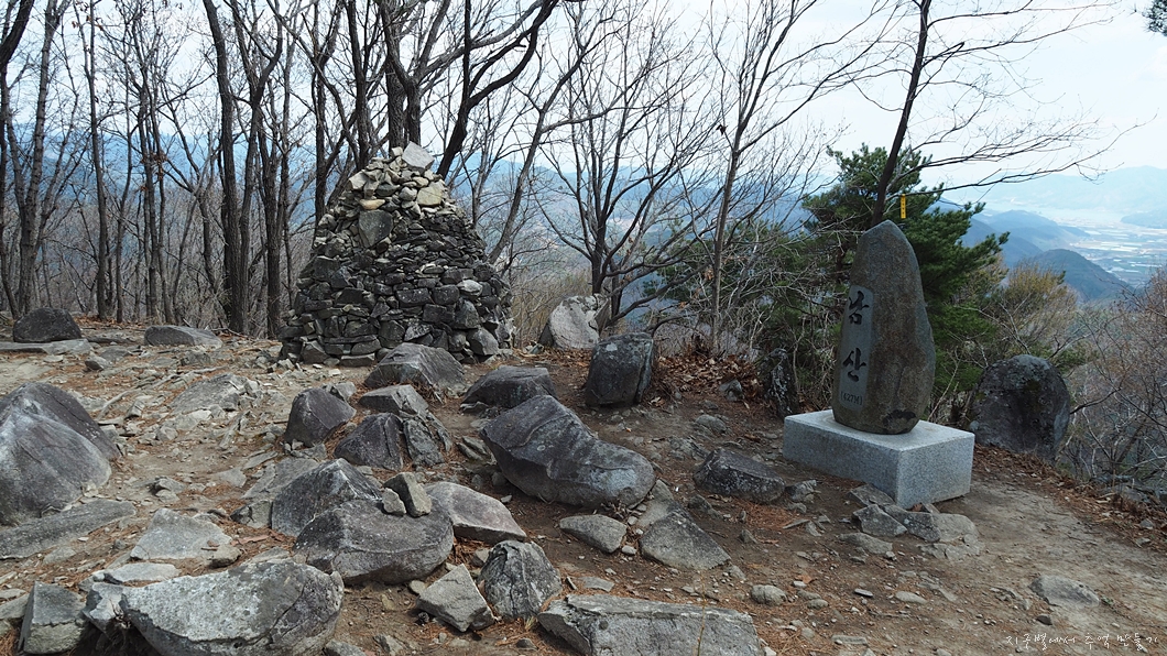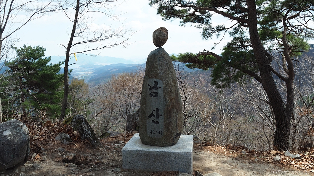 남산에서 조금 내려와 우측으로 편안한 산길 200m를 이동하면 만나는 용바위와 갓바위