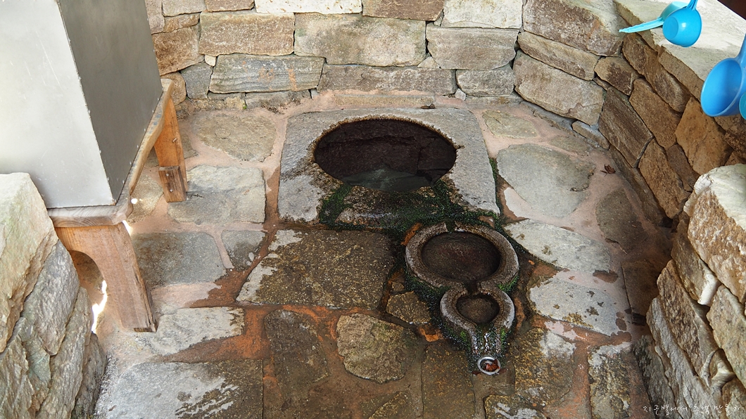 마당 가운데 연화산 옥천수라고 적혀있는 약수물이 있는데 이건 짝퉁입니다.