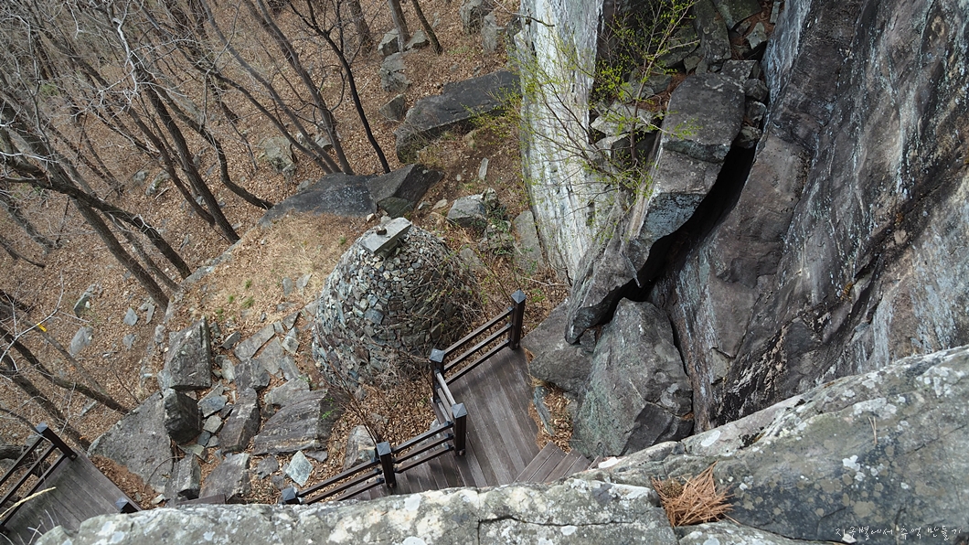 사진은 갓바위 아래 돌탑을 위에서 내려다 본 모습