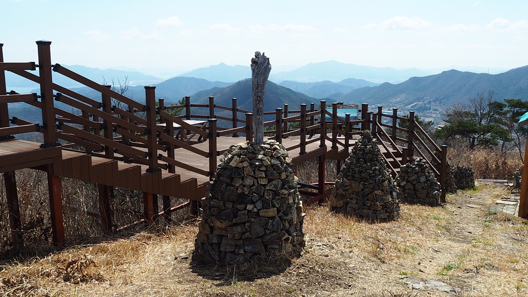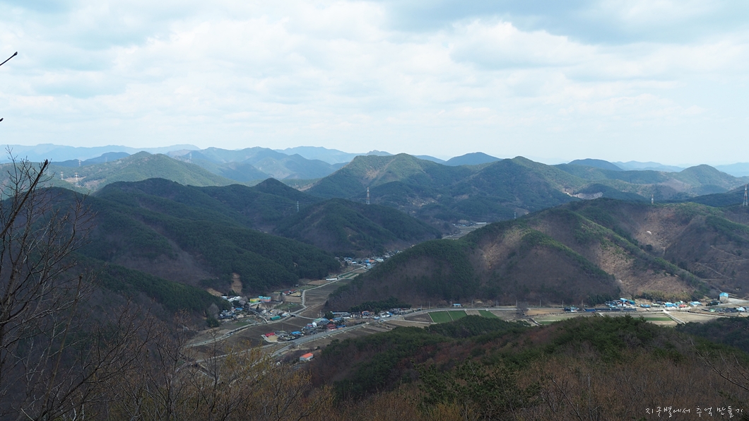 좌측으로 멀리 진주시가지, 그 뒤로 희미하게 지리산이 보입니다.