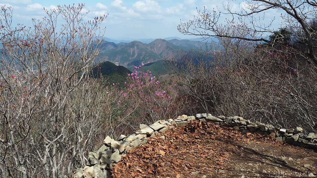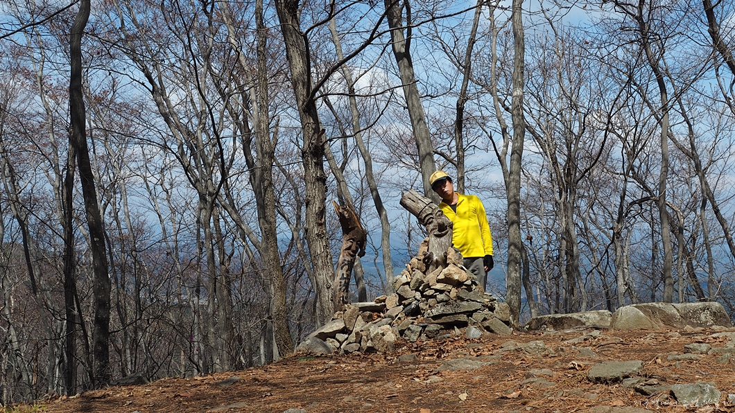 정상 못미쳐 돌탑이 하나 있고 절벽쪽으로는 아담하게 돌담을 만들어 두었습니다.