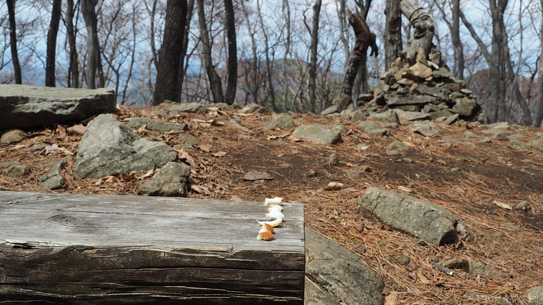 정상석 옆에 둥근 돌이 하나 밖혀 있길래 기어이 빼서 산 높이를 조금 조정 했네요.