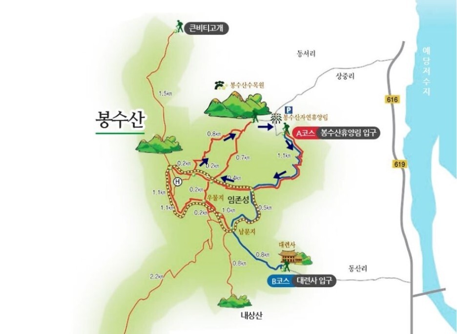 충남 예산, 아산, 공주 3 개 군에 걸쳐 있는 봉수산은 봉황새 머리를 닮았다 하여 봉수산이라고 합니다.