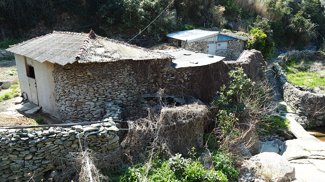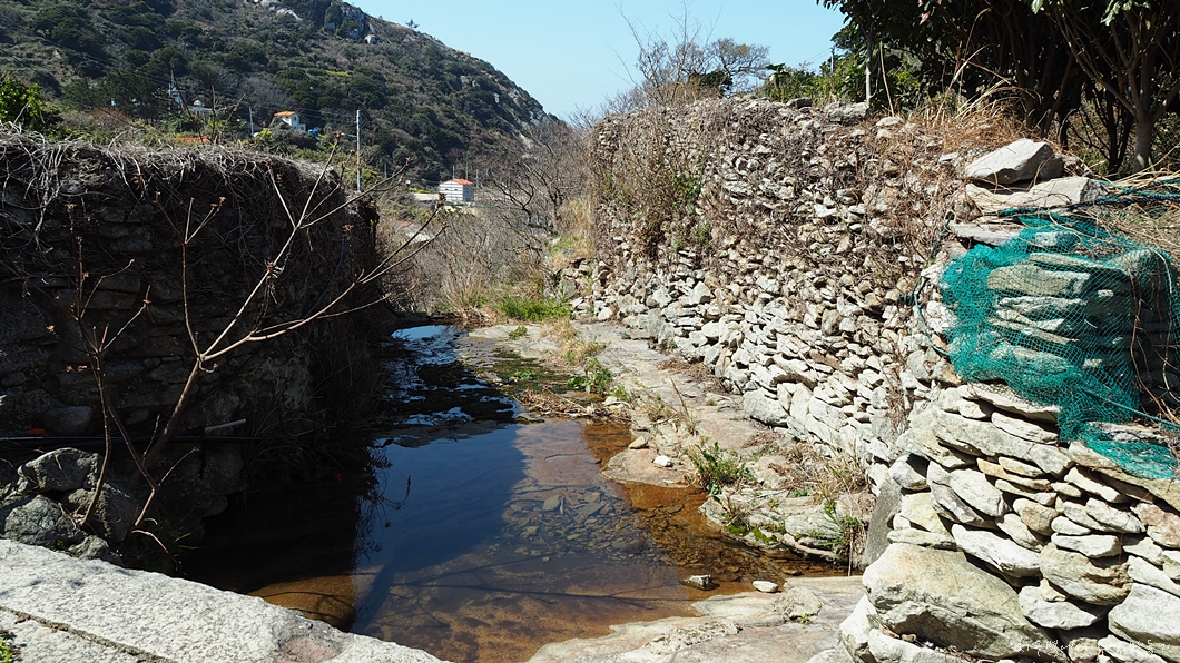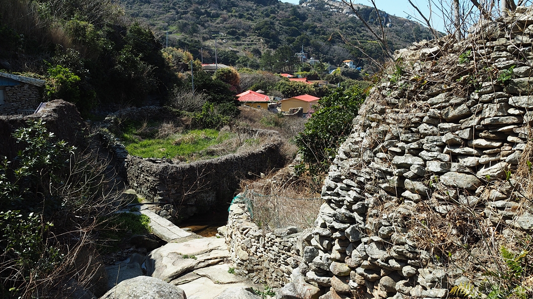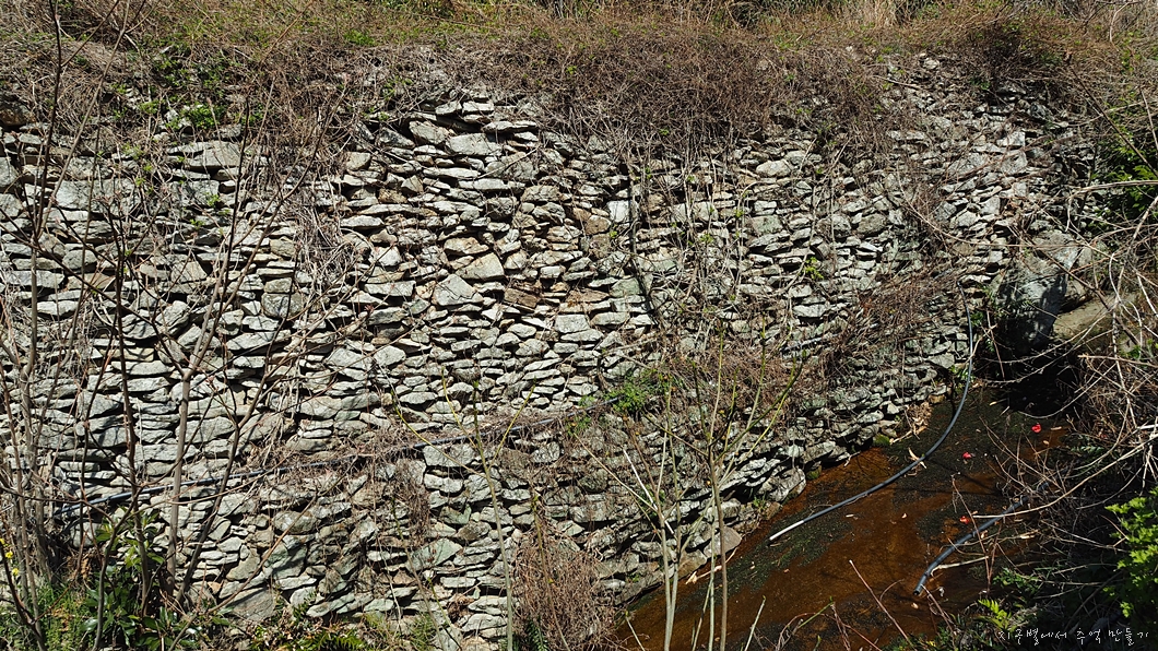 개울부터 쌓여 올려진 돌담.