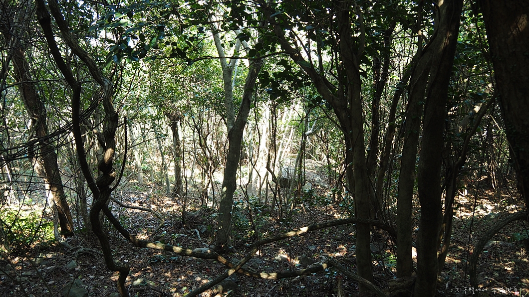 산행길 내내 육지에서 흔해 빠지게 보던 참나무는 한그루도 없고 거의 동백숲이 이어집니다.