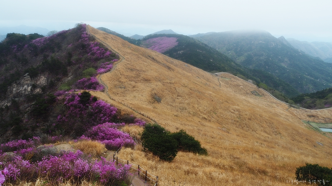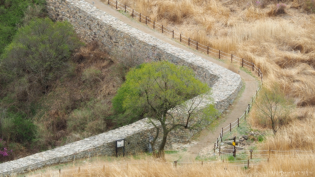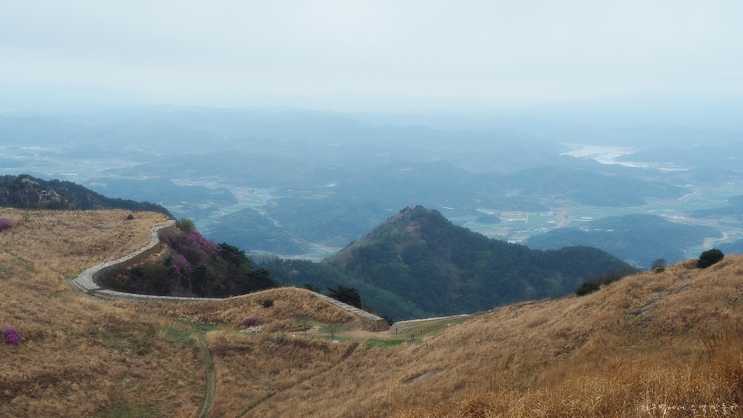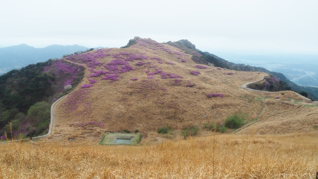 가을 억새와 함께 봄 진달래의 멋진 풍경을 선사하는 화왕산은 정상 인근이 널찍한 분지로 되어 있고 옛 성터가 남아 사적지로 지정이 되어 있는데 널찍한 성 안에는 소나무 몇 그루 외에 나무가 전혀 없어 아주 특별한 장면을 연출한답니다.