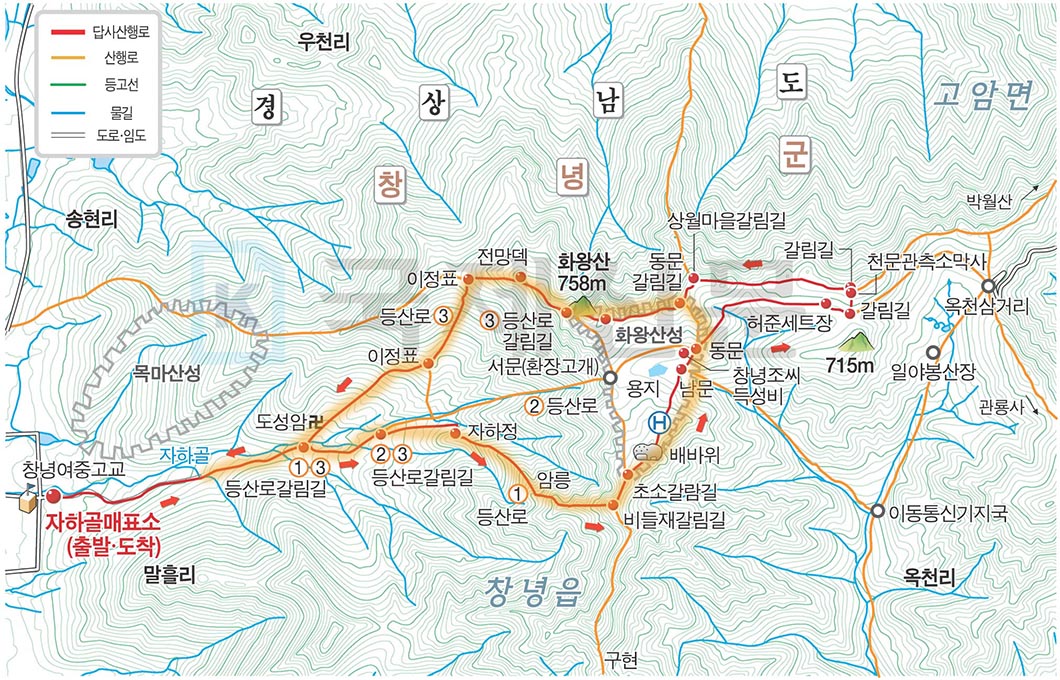 화왕산은 단독으로 올랐다 내려가기도 하지만 관룡산과 구룡산을 연게하여 산행하기도 한답니다.