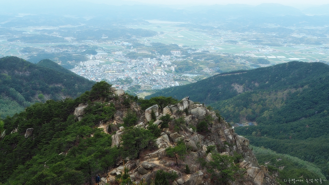 가운데 멀리 우측으로는 변봉과 영축산이 보이구요.