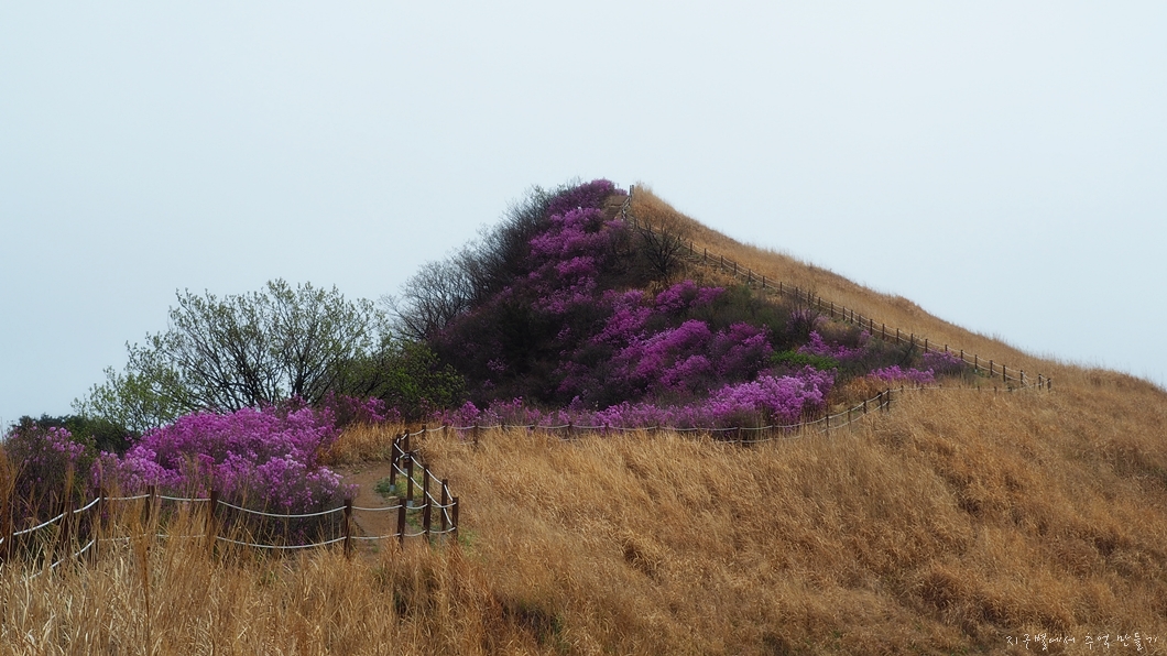 가을 억새가 파란 하늘에 흔들리는 모습도 참 좋지만 절벽 가장자리 피어 있는 진달래 풍경은 이곳 화왕산의 명물이 아닐까 합니다.