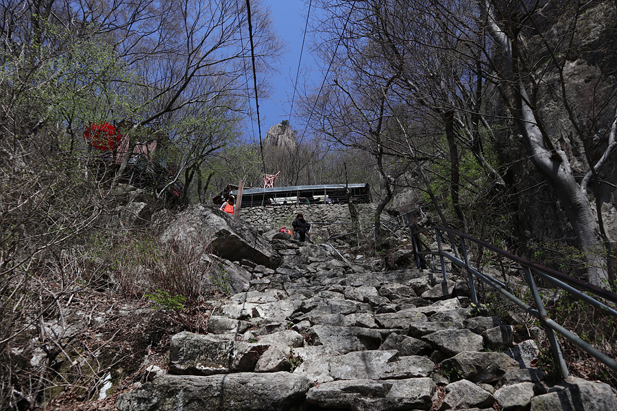 케이블카에서 내린 후 또 가파른 계단을 올라가야 합니다.
