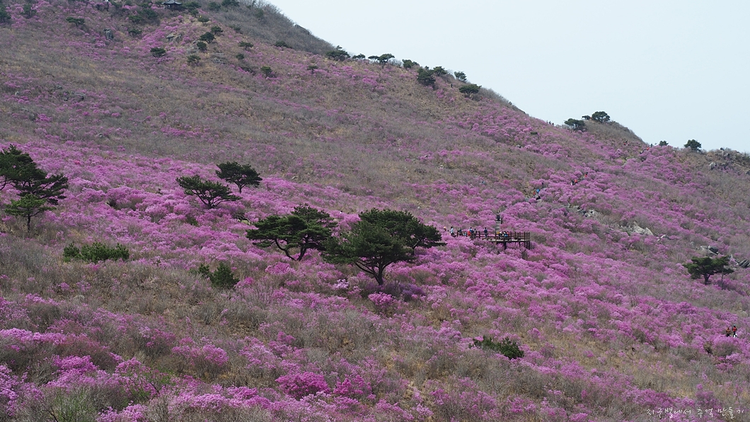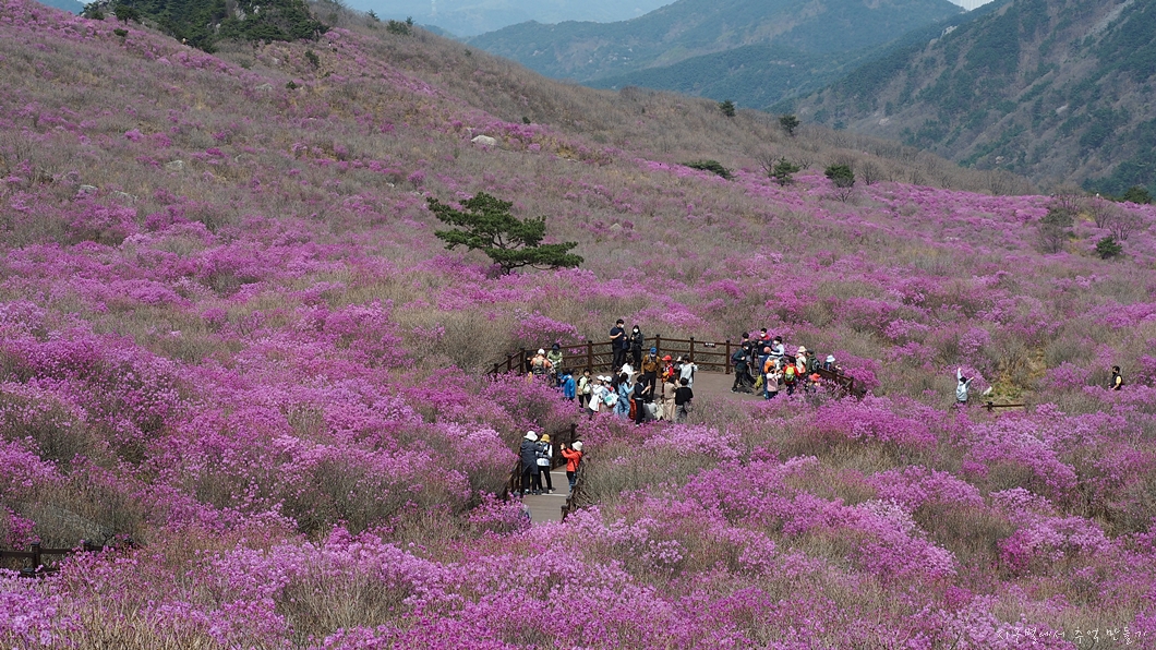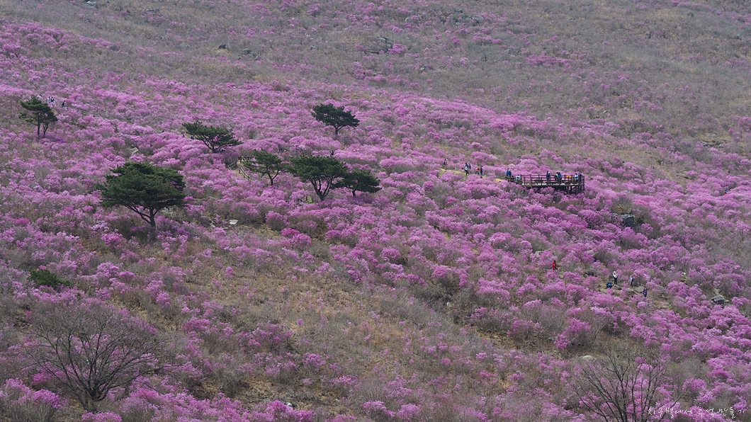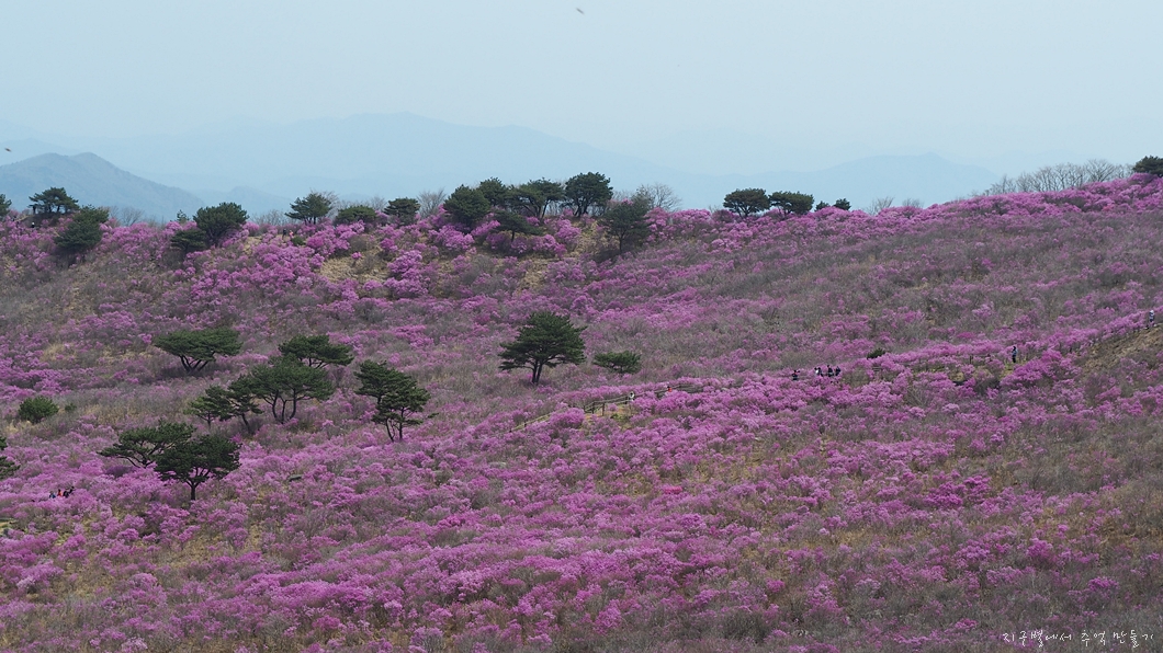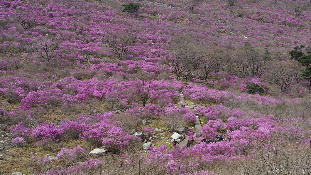 이곳 비슬산 진달래 꽃밭은 해발 1,000m 산정이라 기후에 영향을 많이 받습니다.