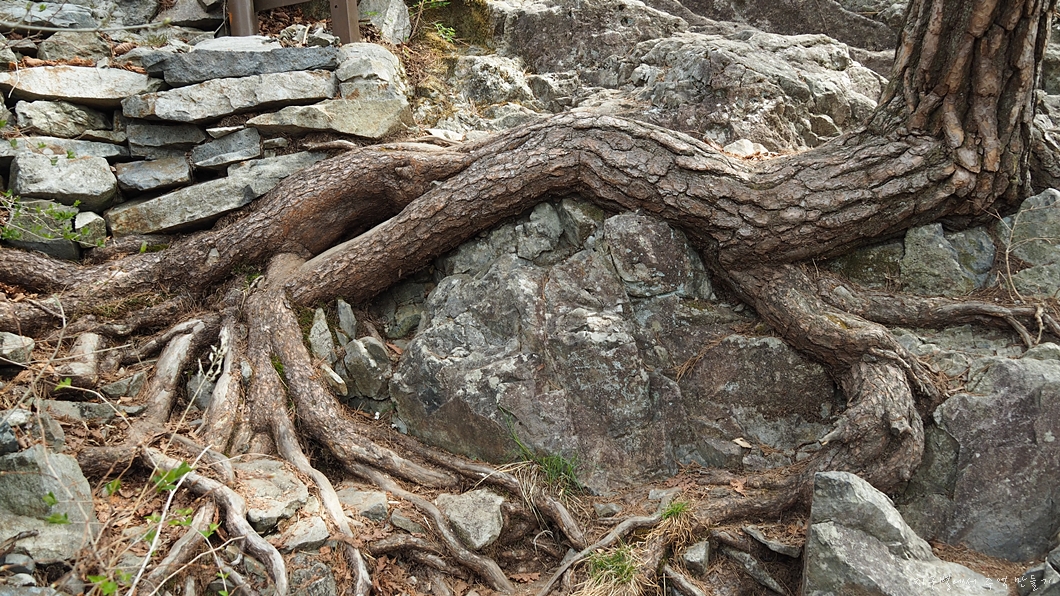 이런 뿌리 있는 곳에서 데크 계단길을 만나고..