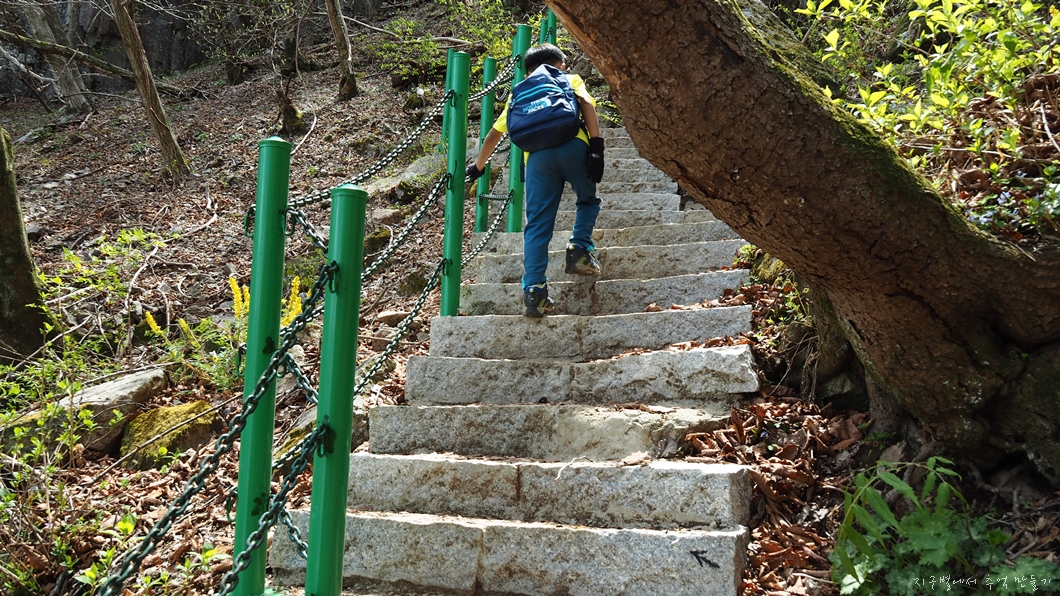 이전에는 없던 가파른 돌계단을 많이 설치해 두었는데 이게 아이의 무릎 폭과 맞지 않아 올라갈 때 아이가 조금 힘들어했네요.