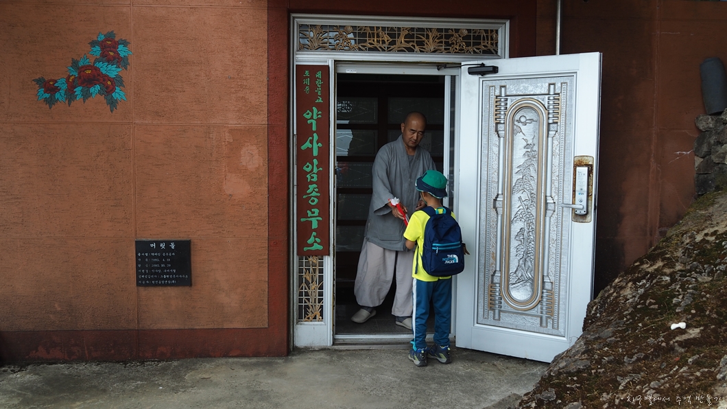 깍듯이 인사하는 바람에 주지스님이 직접 지율군을 데리고 가서 맛난 과자 선물.