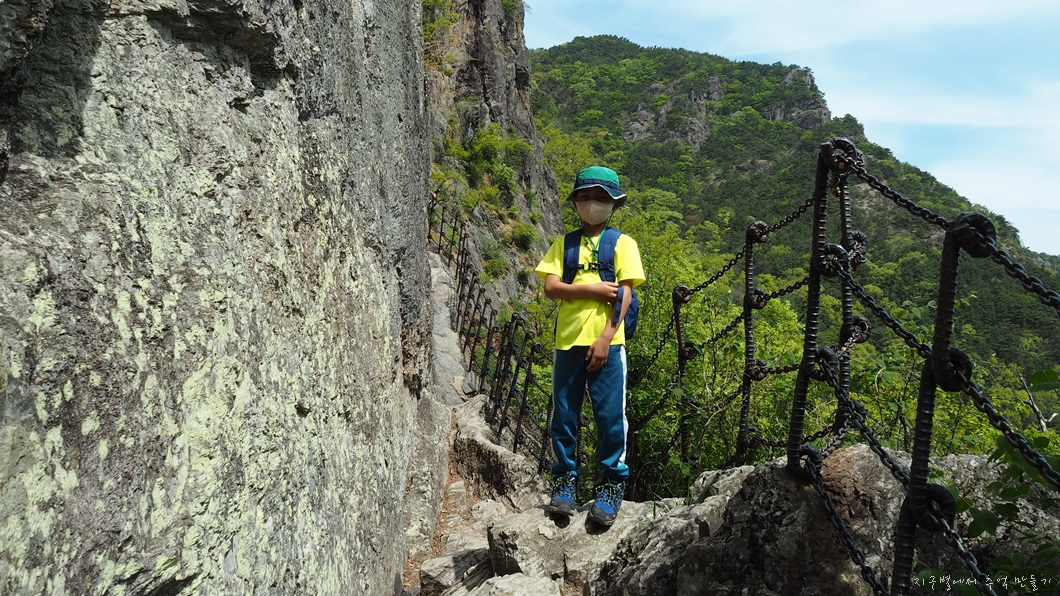 도선굴 가는 구간은 절벽인 데다 바위가 미끄러워 아이 손은 잡고 조심스럽게 이동.