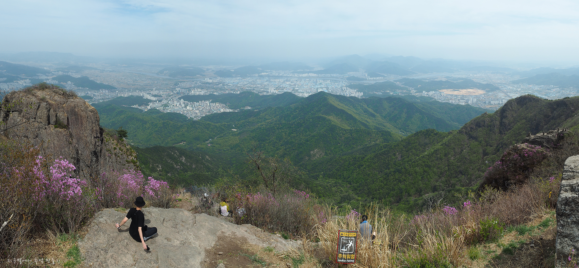 다른 방향에서 내려다본 정상의 조망 파노라마.
