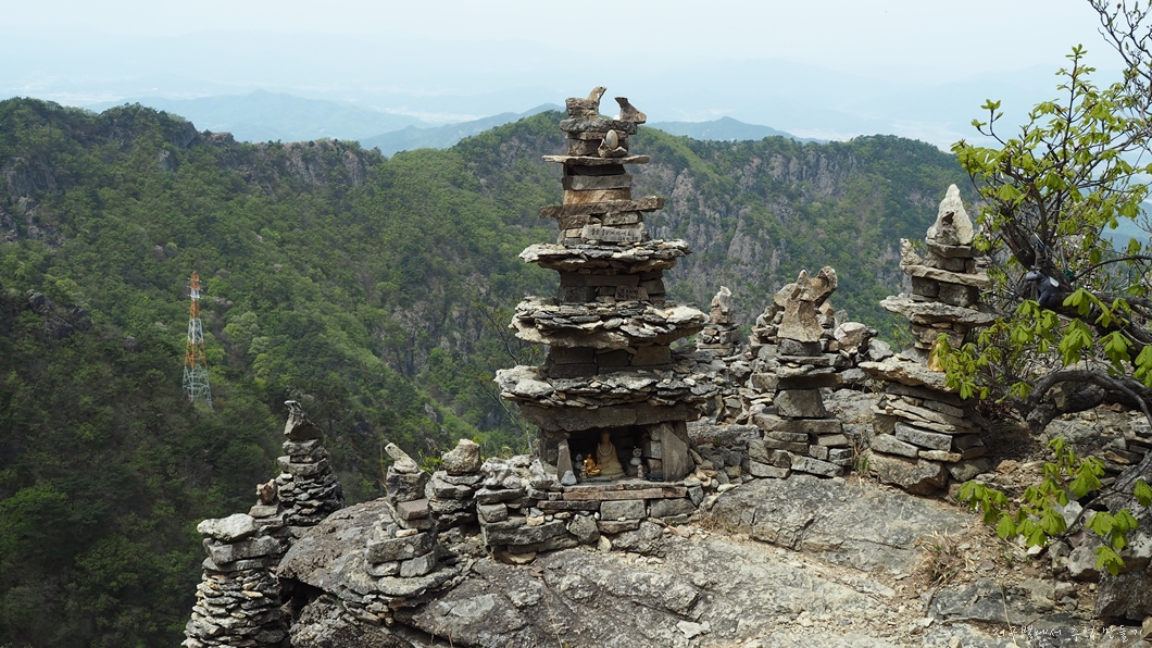 아득한 절벽 위에 쌓은 돌탑들이 위태하게 보이지만 모진 비바람에도 끄떡없이 견디는 걸 보면 얼마나 정성으로 쌓았는지 알 수 있습니다.