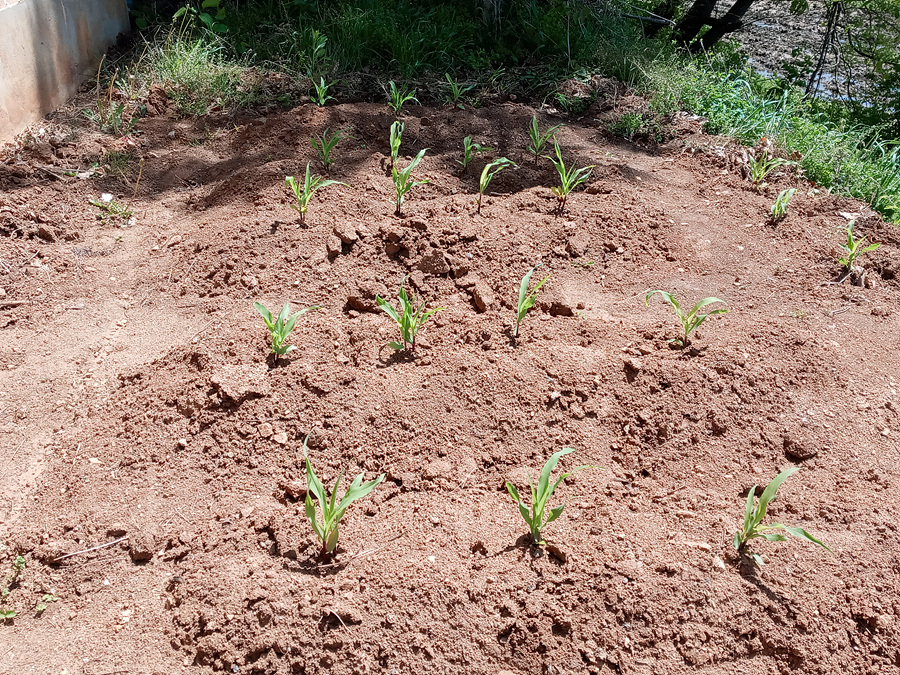 상추와 옥수수는 일부러 비닐 멀칭을 안 했습니다.. 왠지 비닐을 쓰는 게 마음이 편치 않아서..
