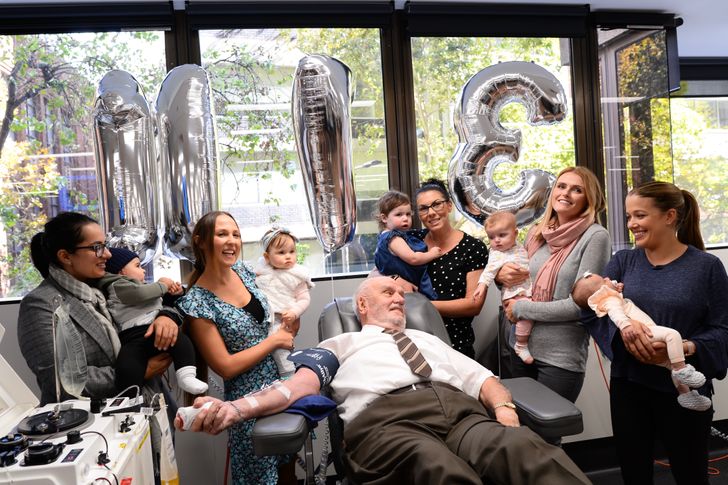 제임스는 지난해 5월 11일 시드니에서 마지막 헌혈을 했습니다. 81세인 그는 호주 법에 의해 기증자 연령 제한에 도달했습니다. 마지막으로 4개의 헌혈 튜브를 가져왔고 이 숫자는 1,173이 되었으며 그는 수백만 명의 아기의 생명을 구하기 위해 팔을 내밀었습니다.