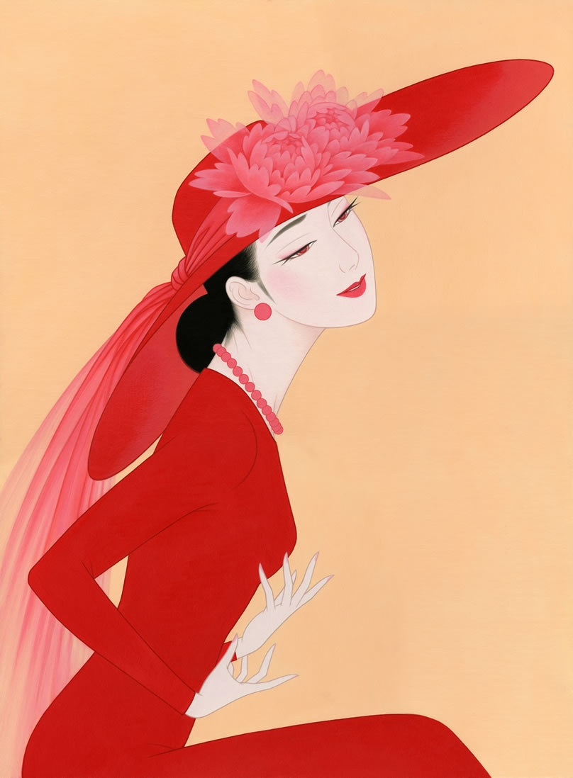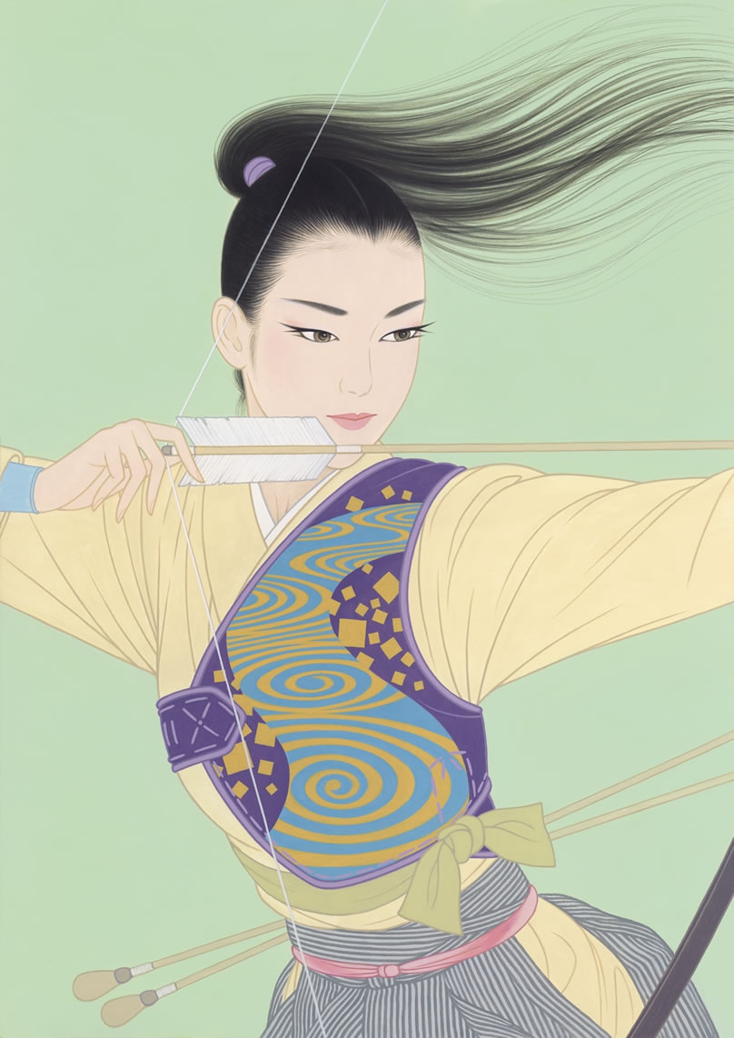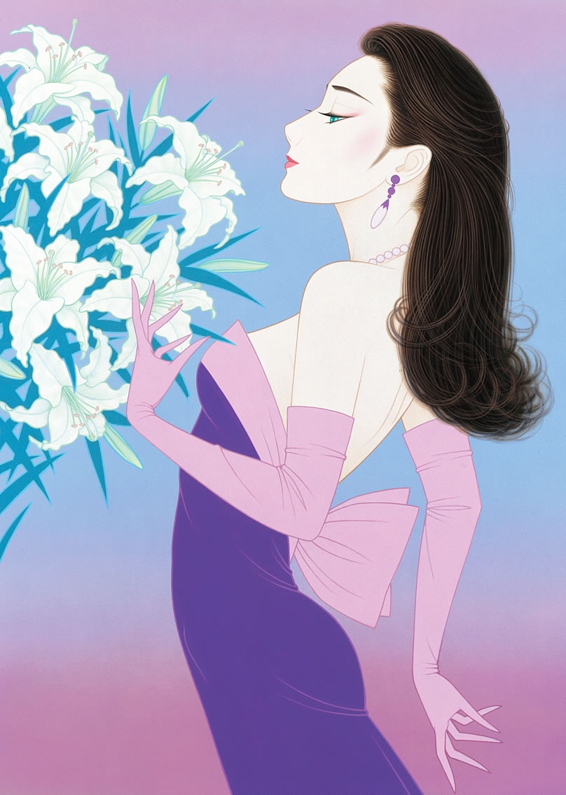 초기에는 서양 미술을 하다가 본인이 일본인이라는 생각으로 일본 특유의 미 의식에 심취하여 독특한 터치로 그려지는 일본 미인화 전문 화가로 성장이 되었다고 합니다.