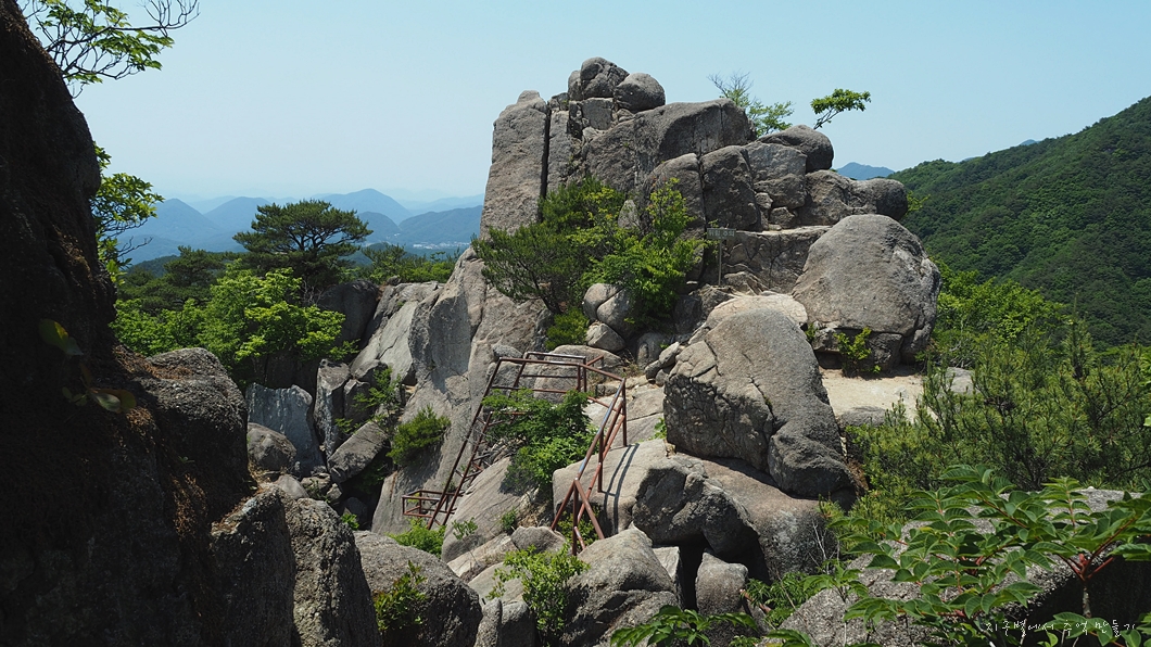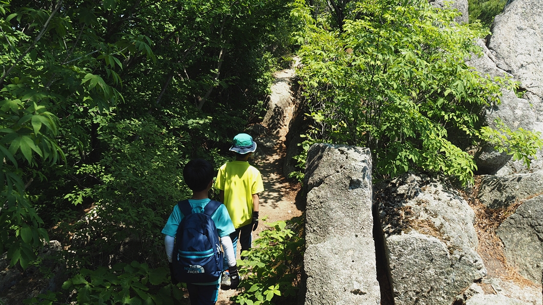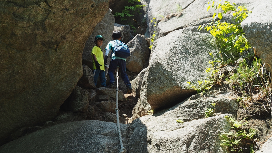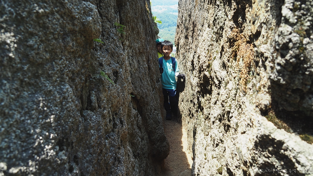전망이 트이는 바위가 앞쪽에 있는데 딱 아이들만 빠져 나갈 수 있는 바위틈이 나 있습니다.
