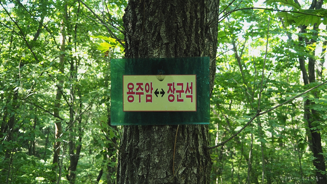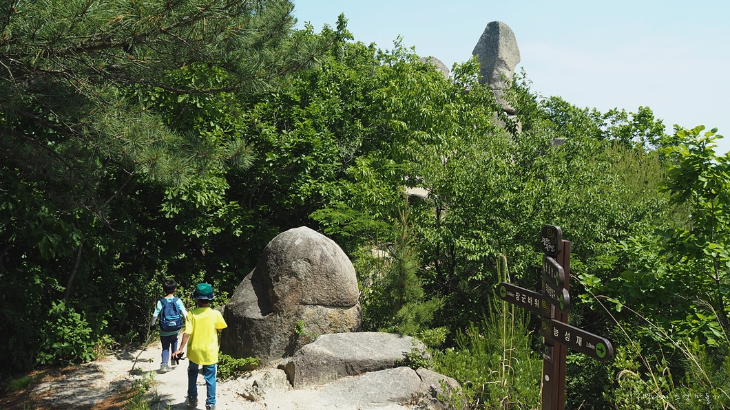 갓바위 시설지구에서 갓바위를 따라 오르다가 관암사에서 우측 계곡길을 따라 오르면 용주암 입구 고개가 나오고 이곳에서 용주암을 거쳐 능선을 따라 1시간정도 이동하면 신기한 형태의 장군바위가 서 있답니다.