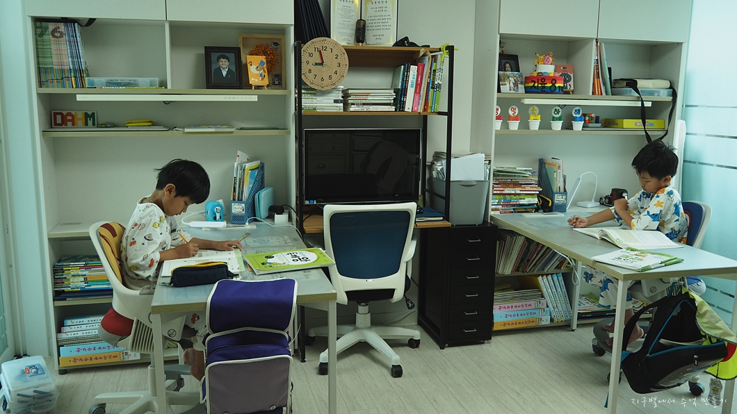지리산 종주 여파가 살짝 남아 있지만 그래도 산행 칭구가 주문을 하는데 뺄 수가 없어 가까운 명마산을 산행지로 택하고 아이 집으로 가니 두 형제가 열공 중이네요.