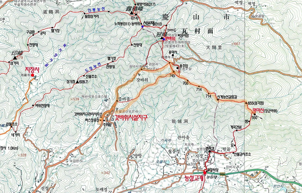 명마산은 높이 501m의 산으로서 경산 와촌면 소속입니다.