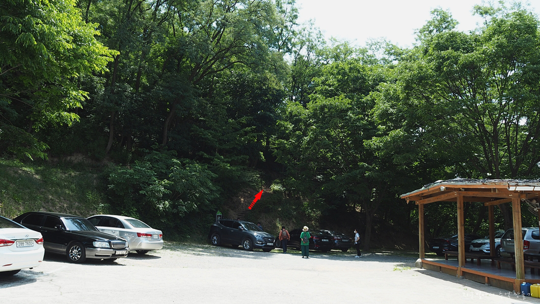 갓바위 식당 맨 위쪽에 들머리가 있답니다.(화살표)
