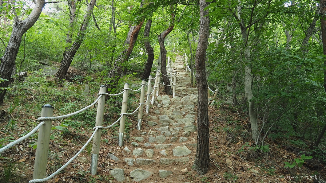 저 처럼 연세(?)드신 분들을 위하여 목책을 설치해 두었는데 잡고 오르니까 편하고 좋네유.