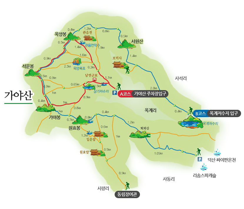 예상 코스는 기본코스인 옥양봉~석문봉~가야봉을 거쳐 원점 회귀하는 걸로 하고..