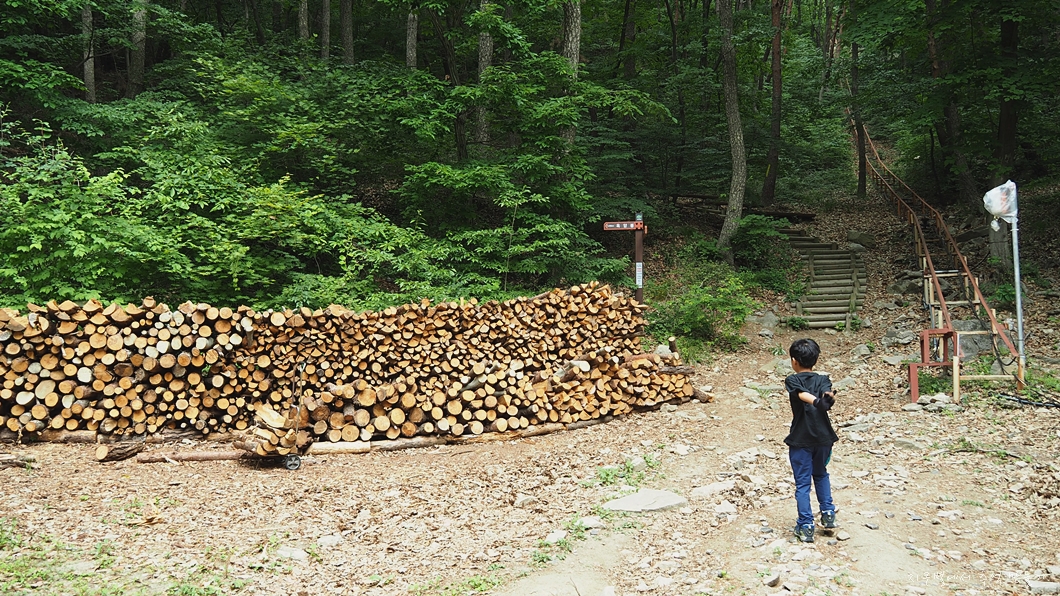 널찍한 공터가 나오고 한켠에는 장작이 항거 쌓여져 있습니다.
