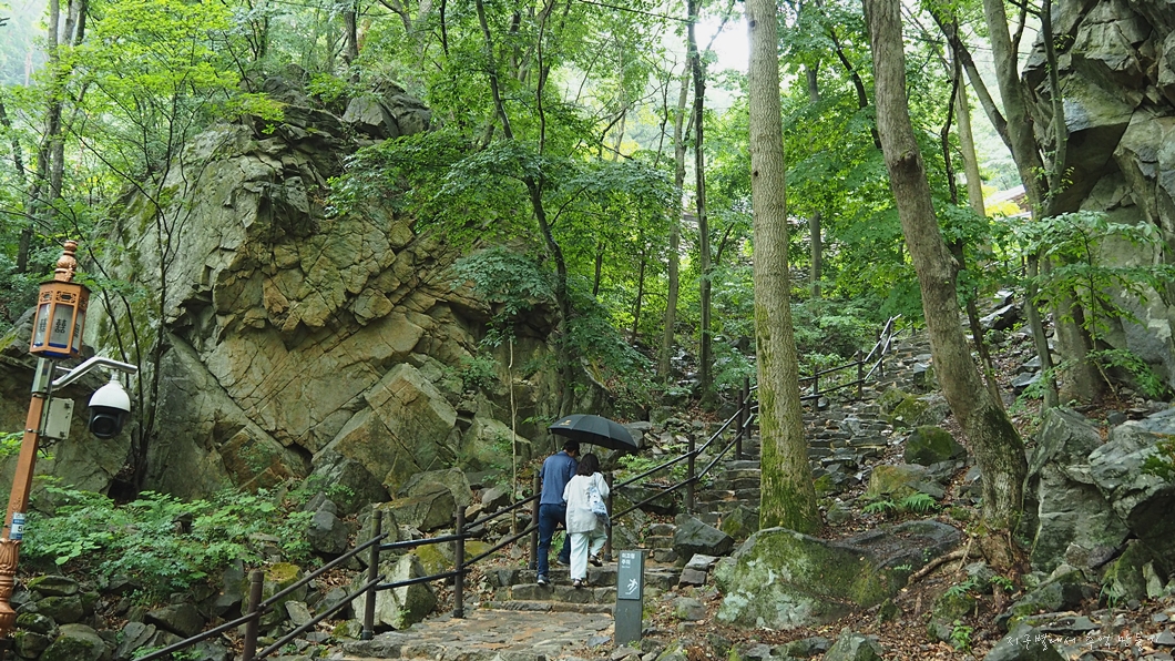 주차장에서 삼존상까지는 약 5분 정도 걸어 올라가야 합니다.