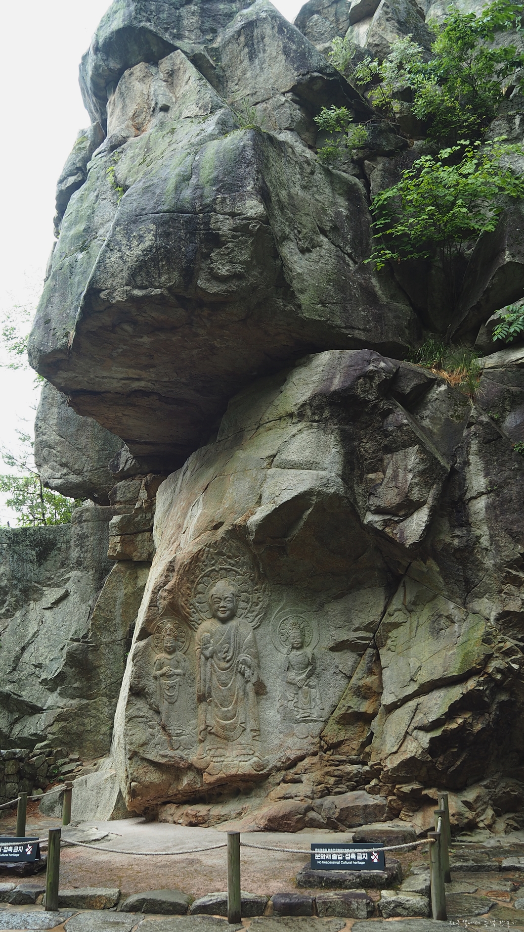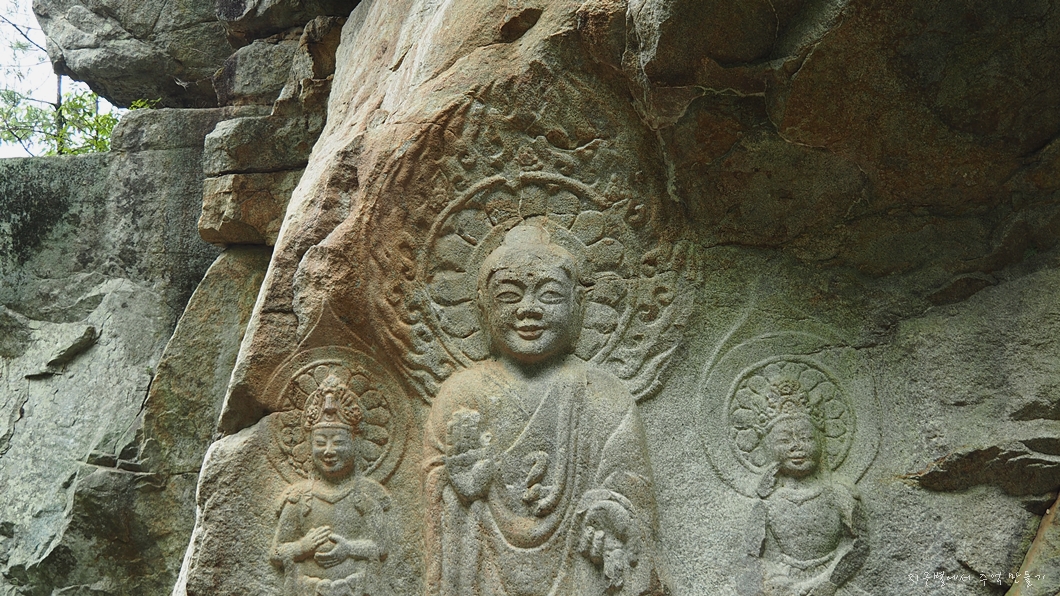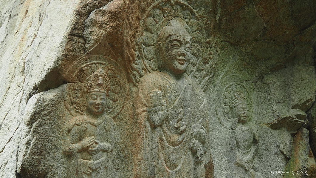 우리 문화재는 거의 한문으로 되어 있어 마애여래삼존상(磨崖如來三尊像)이란 어려운 글자를 접하는 청소년이나 아이들은 조금 난해하지 않을까 생각도 든답니다.