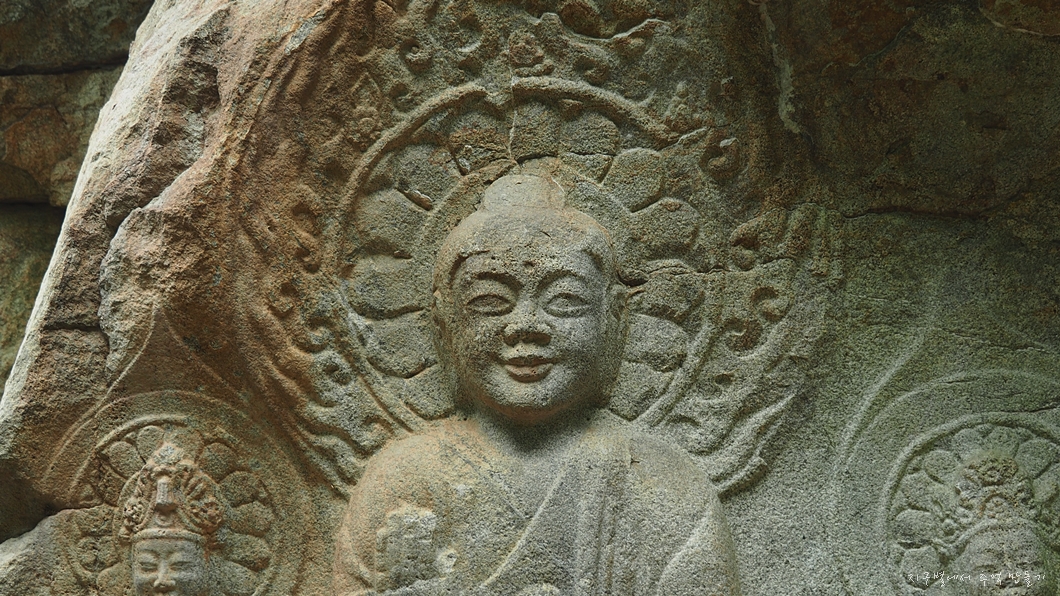 이곳 용현마을의 '바위에 새겨진 세 부처님'은 풍부한 입체감과 독특한 미소로 유명하답니다.