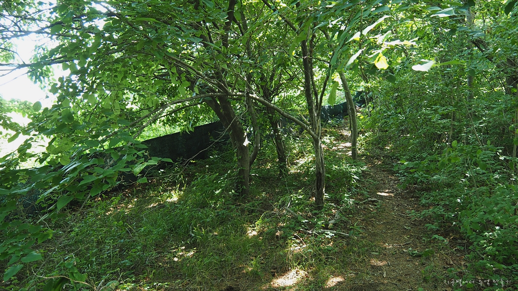 가림막 건너로 상큼한 복장으로 골프치는 이들이 보이는데 땀 흘리며 오르는 산길에서는 기분 별로입니다.